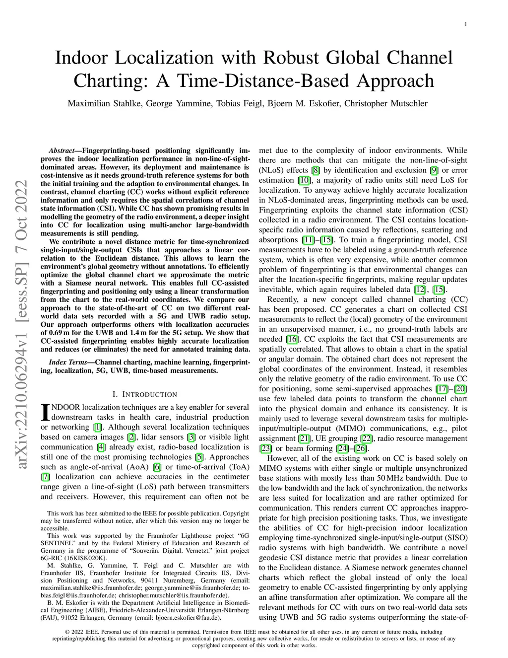 Indoor Localization with Robust Global Channel Charting: A