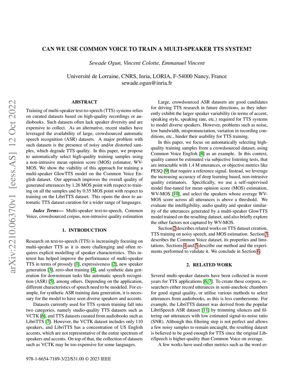 Can we use Common Voice to train a Multi-Speaker TTS system?