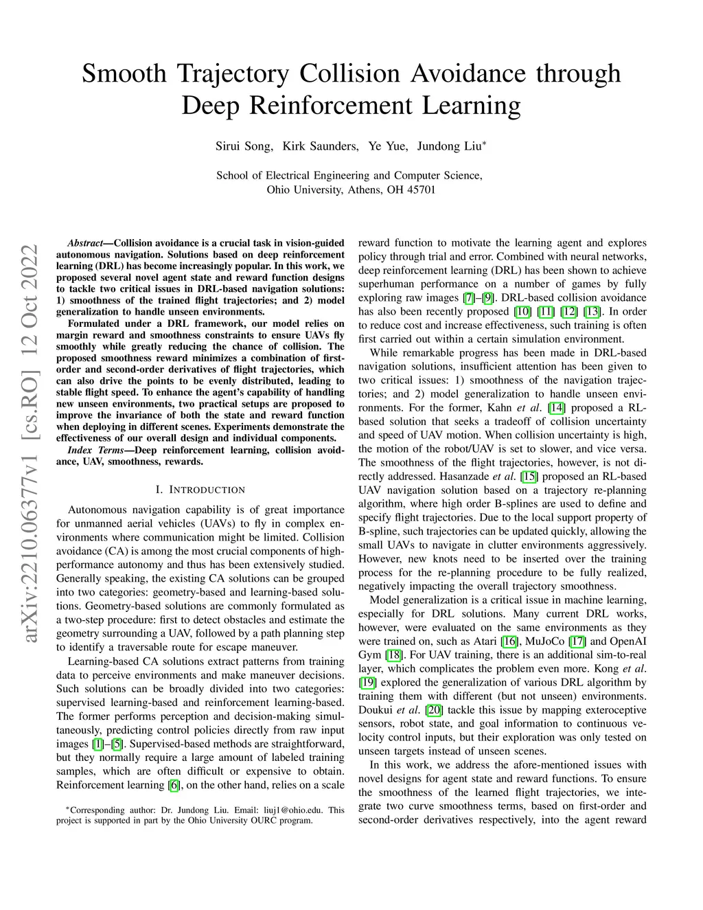 Collision avoidance is a crucial task in vision-guided autonomous navigation. Solutions based on deep reinforcement learning (DRL) has become increasingly popular. In this work, we proposed several novel agent state and reward function designs to tackle two critical issues in DRL-based navigation solutions: 1) smoothness of the trained flight trajectories; and 2) model generalization to handle unseen environments. Formulated under a DRL framework, our model relies on margin reward and smoothness constraints to ensure UAVs fly smoothly while greatly reducing the chance of collision. The proposed smoothness reward minimizes a combination of first-order and second-order derivatives of flight trajectories, which can also drive the points to be evenly distributed, leading to stable flight speed. To enhance the agent's capability of handling new unseen environments, two practical setups are proposed to improve the invariance of both the state and reward function when deploying in different scenes. Experiments demonstrate the effectiveness of our overall design and individual components.