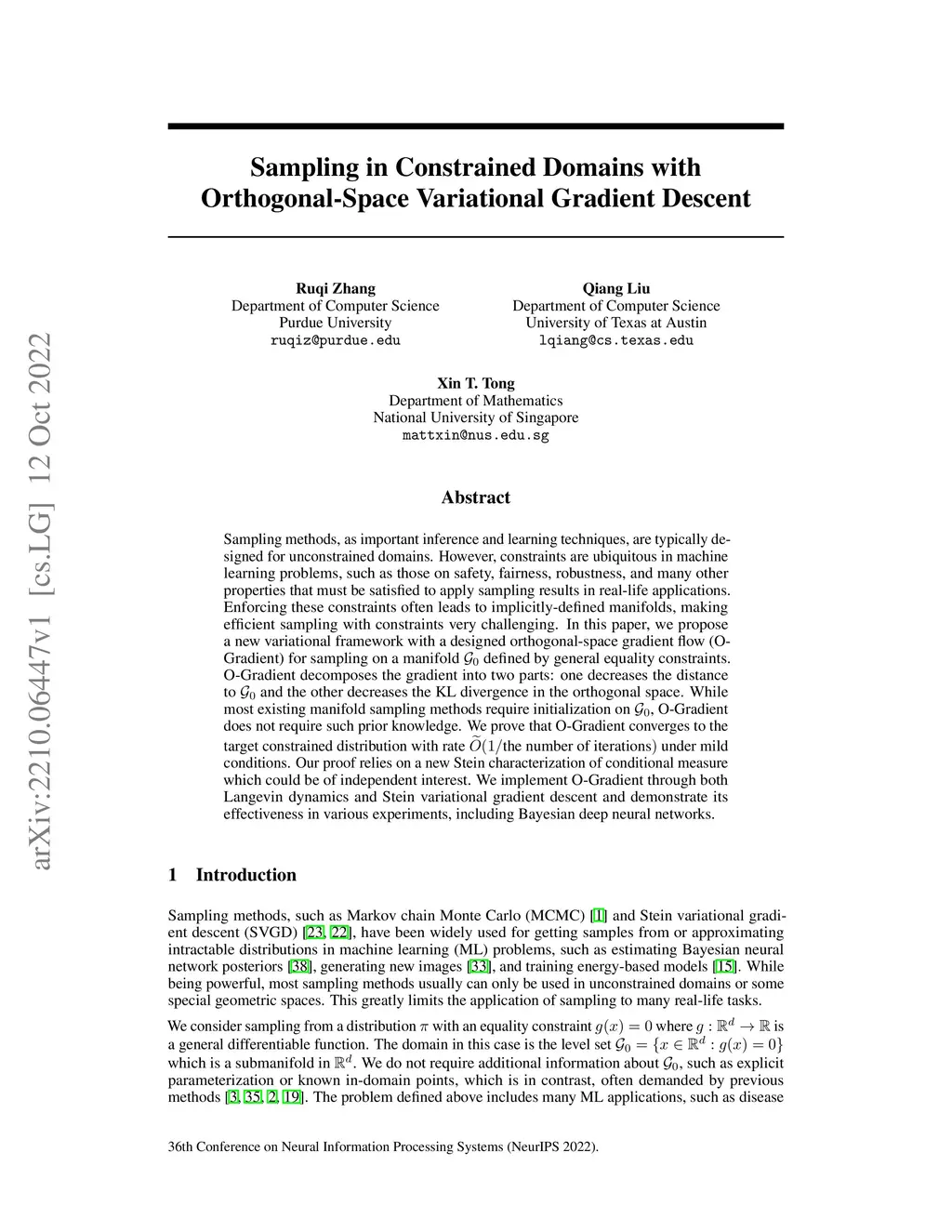 Sampling in Constrained Domains with Orthogonal-Space Variational