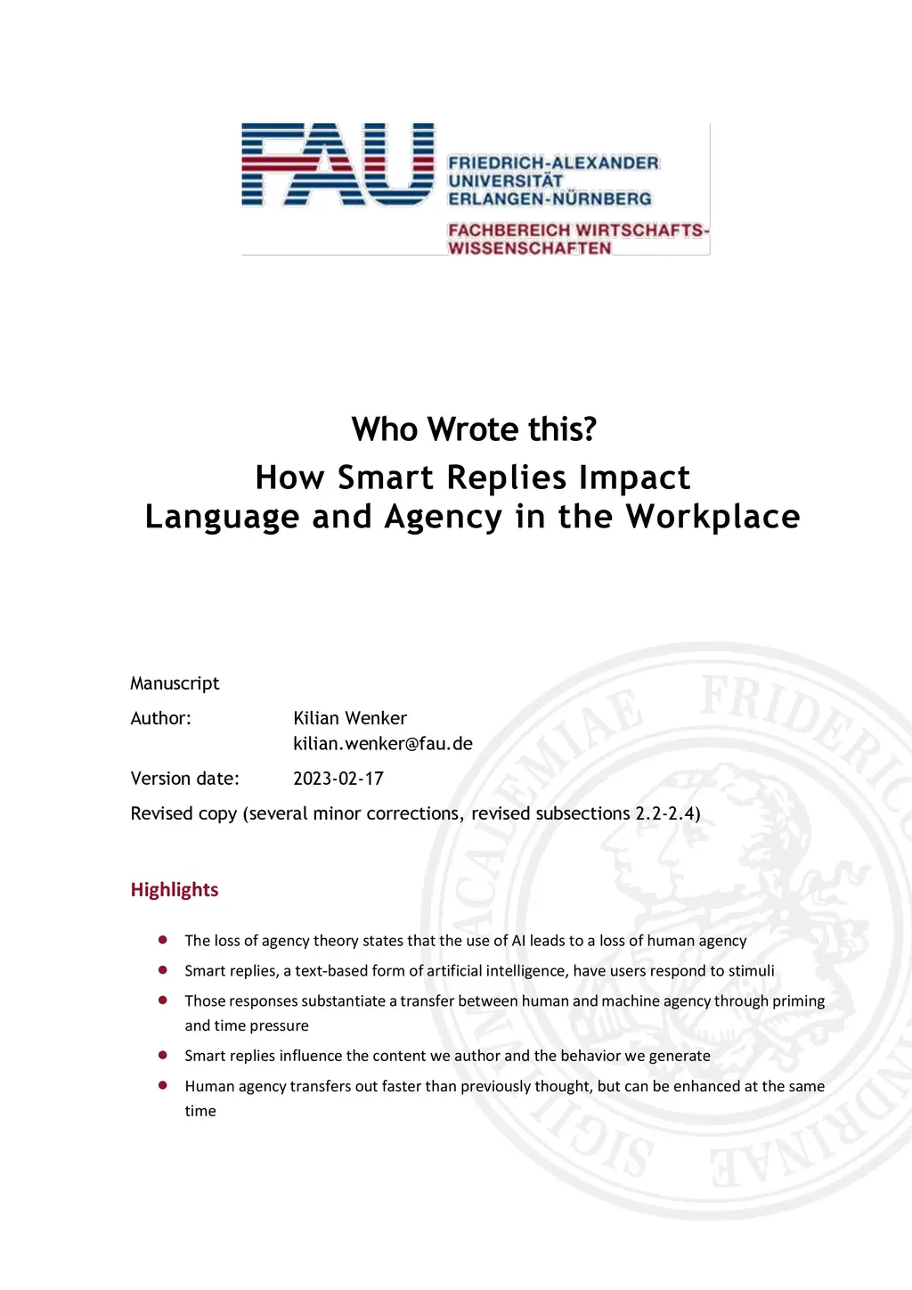 Who Wrote this? How Smart Replies Impact Language and Agency in the