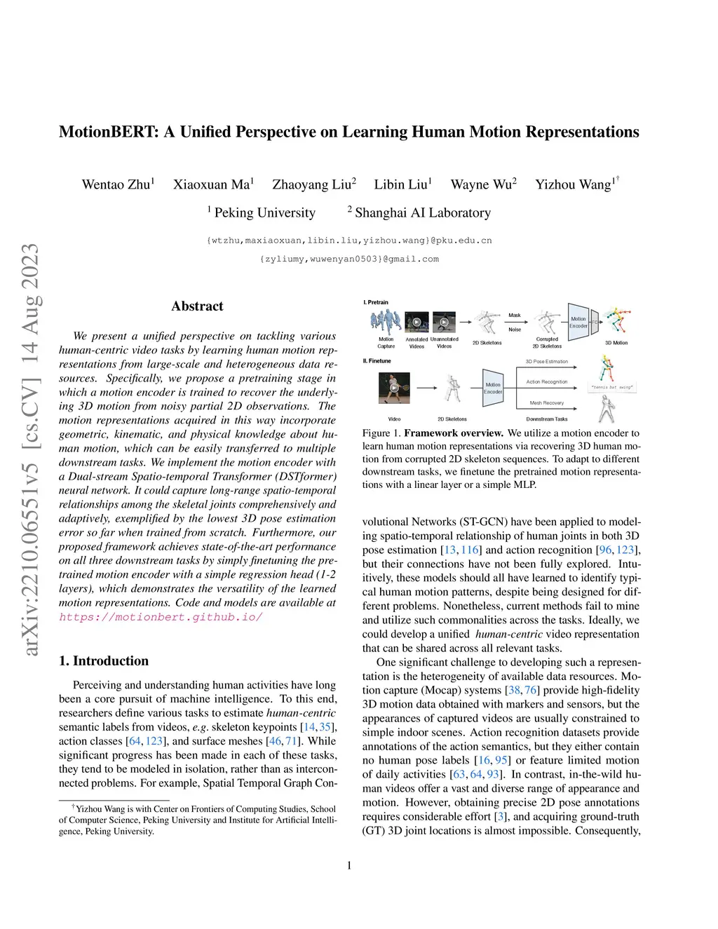 MotionBERT: A Unified Perspective on Learning Human Motion