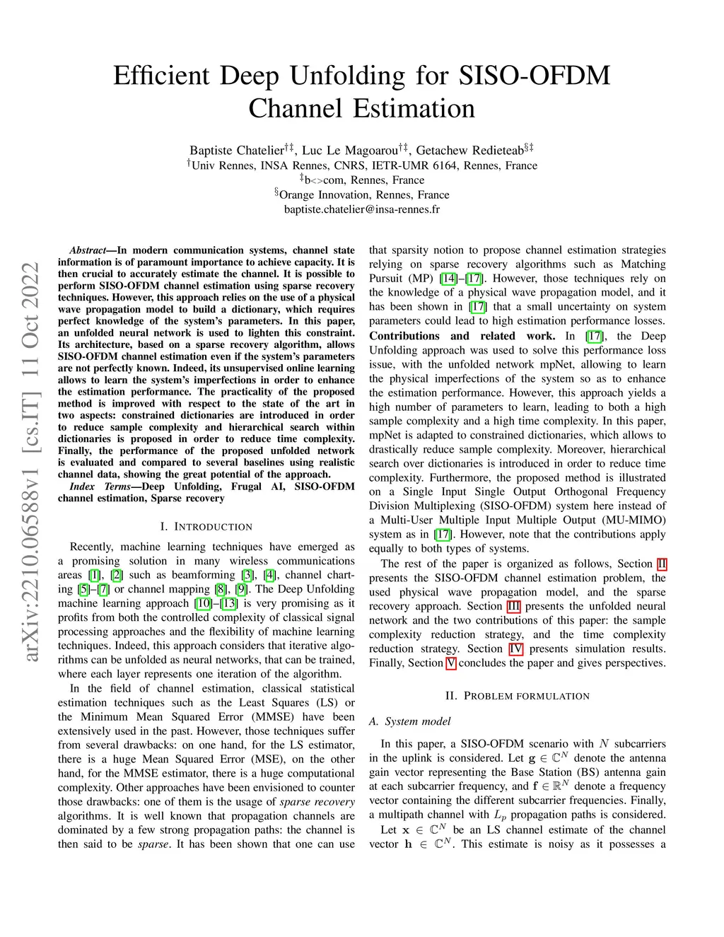 In modern communication systems, channel state information is of paramount importance to achieve capacity. It is then crucial to accurately estimate the channel. It is possible to perform SISO-OFDM channel estimation using sparse recovery techniques. However, this approach relies on the use of a physical wave propagation model to build a dictionary, which requires perfect knowledge of the system's parameters. In this paper, an unfolded neural network is used to lighten this constraint. Its architecture, based on a sparse recovery algorithm, allows SISO-OFDM channel estimation even if the system's parameters are not perfectly known. Indeed, its unsupervised online learning allows to learn the system's imperfections in order to enhance the estimation performance. The practicality of the proposed method is improved with respect to the state of the art in two aspects: constrained dictionaries are introduced in order to reduce sample complexity and hierarchical search within dictionaries is proposed in order to reduce time complexity. Finally, the performance of the proposed unfolded network is evaluated and compared to several baselines using realistic channel data, showing the great potential of the approach.
