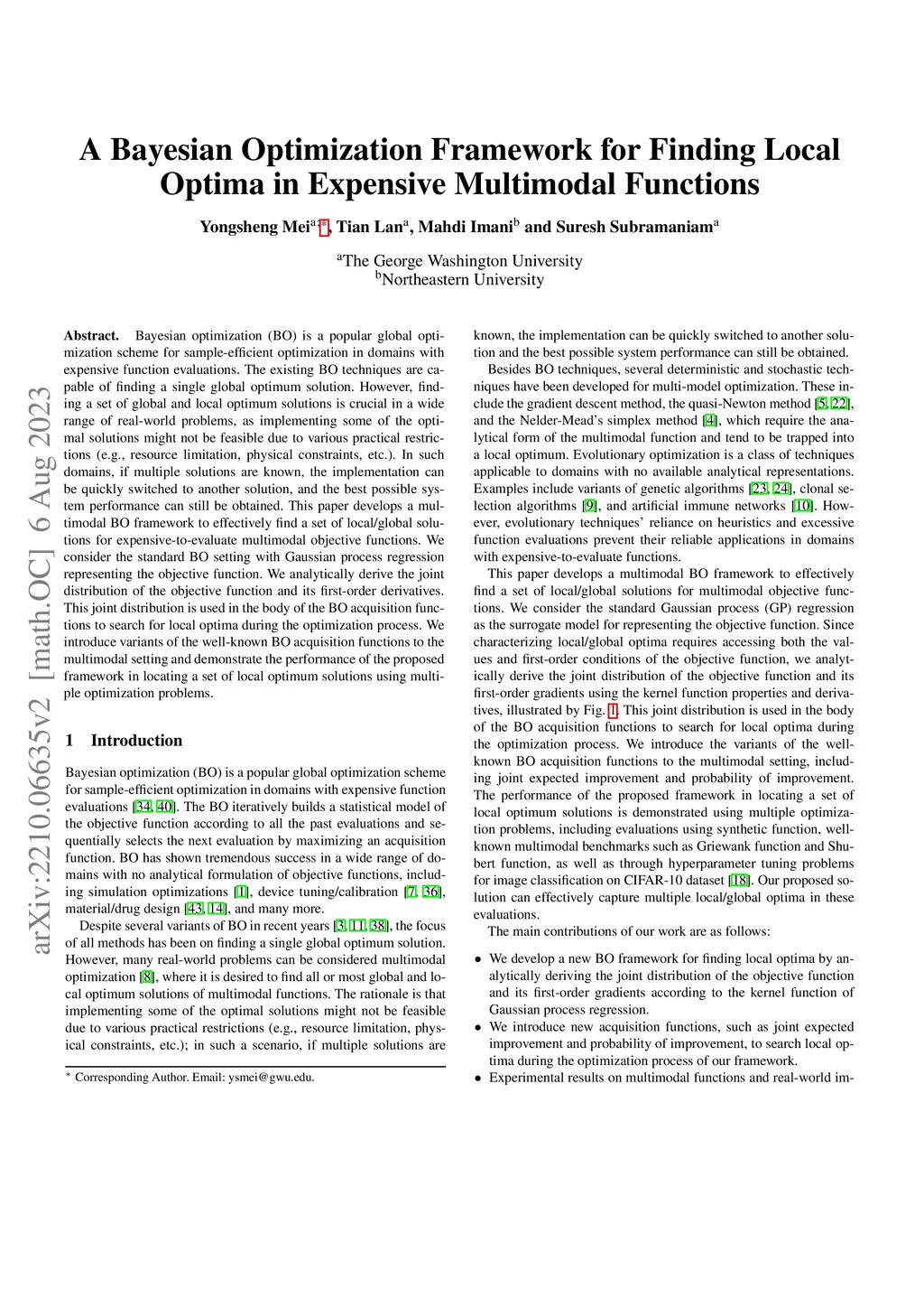 Bayesian optimization (BO) is a popular global optimization scheme for sample-efficient optimization in domains with expensive function evaluations. The existing BO techniques are capable of finding a single global optimum solution. However, finding a set of global and local optimum solutions is crucial in a wide range of real-world problems, as implementing some of the optimal solutions might not be feasible due to various practical restrictions (e.g., resource limitation, physical constraints, etc.). In such domains, if multiple solutions are known, the implementation can be quickly switched to another solution, and the best possible system performance can still be obtained. This paper develops a multimodal BO framework to effectively find a set of local/global solutions for expensive-to-evaluate multimodal objective functions. We consider the standard BO setting with Gaussian process regression representing the objective function. We analytically derive the joint distribution of the objective function and its first-order derivatives. This joint distribution is used in the body of the BO acquisition functions to search for local optima during the optimization process. We introduce variants of the well-known BO acquisition functions to the multimodal setting and demonstrate the performance of the proposed framework in locating a set of local optimum solutions using multiple optimization problems.