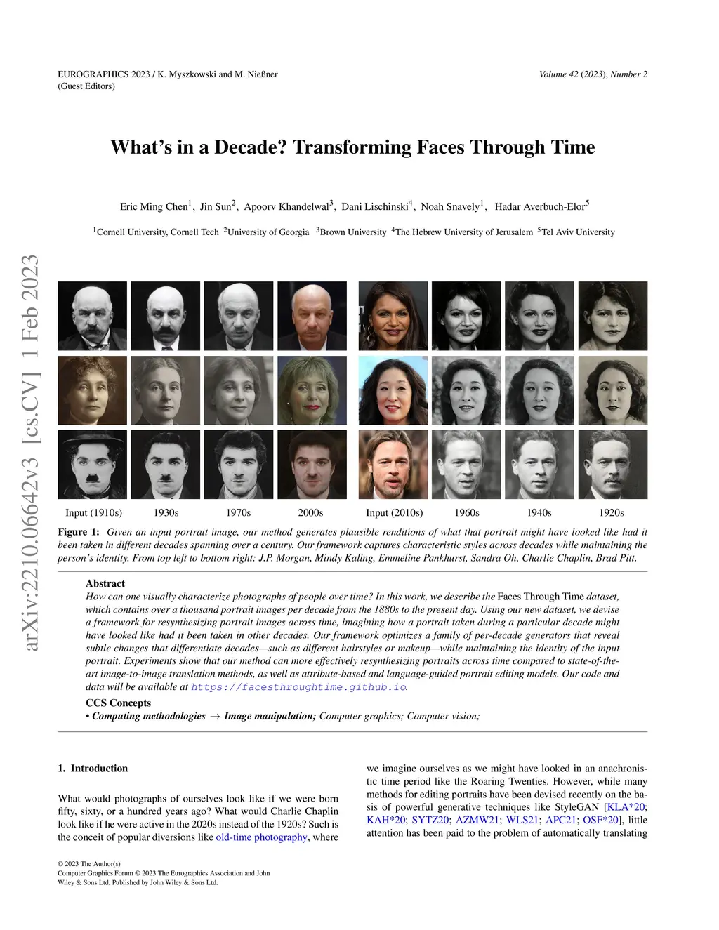 How can one visually characterize people in a decade? In this work, we assemble the Faces Through Time dataset, which contains over a thousand portrait images from each decade, spanning the 1880s to the present day. Using our new dataset, we present a framework for resynthesizing portrait images across time, imagining how a portrait taken during a particular decade might have looked like, had it been taken in other decades. Our framework optimizes a family of per-decade generators that reveal subtle changes that differentiate decade--such as different hairstyles or makeup--while maintaining the identity of the input portrait. Experiments show that our method is more effective in resynthesizing portraits across time compared to state-of-the-art image-to-image translation methods, as well as attribute-based and language-guided portrait editing models. Our code and data will be available at https://facesthroughtime.github.io