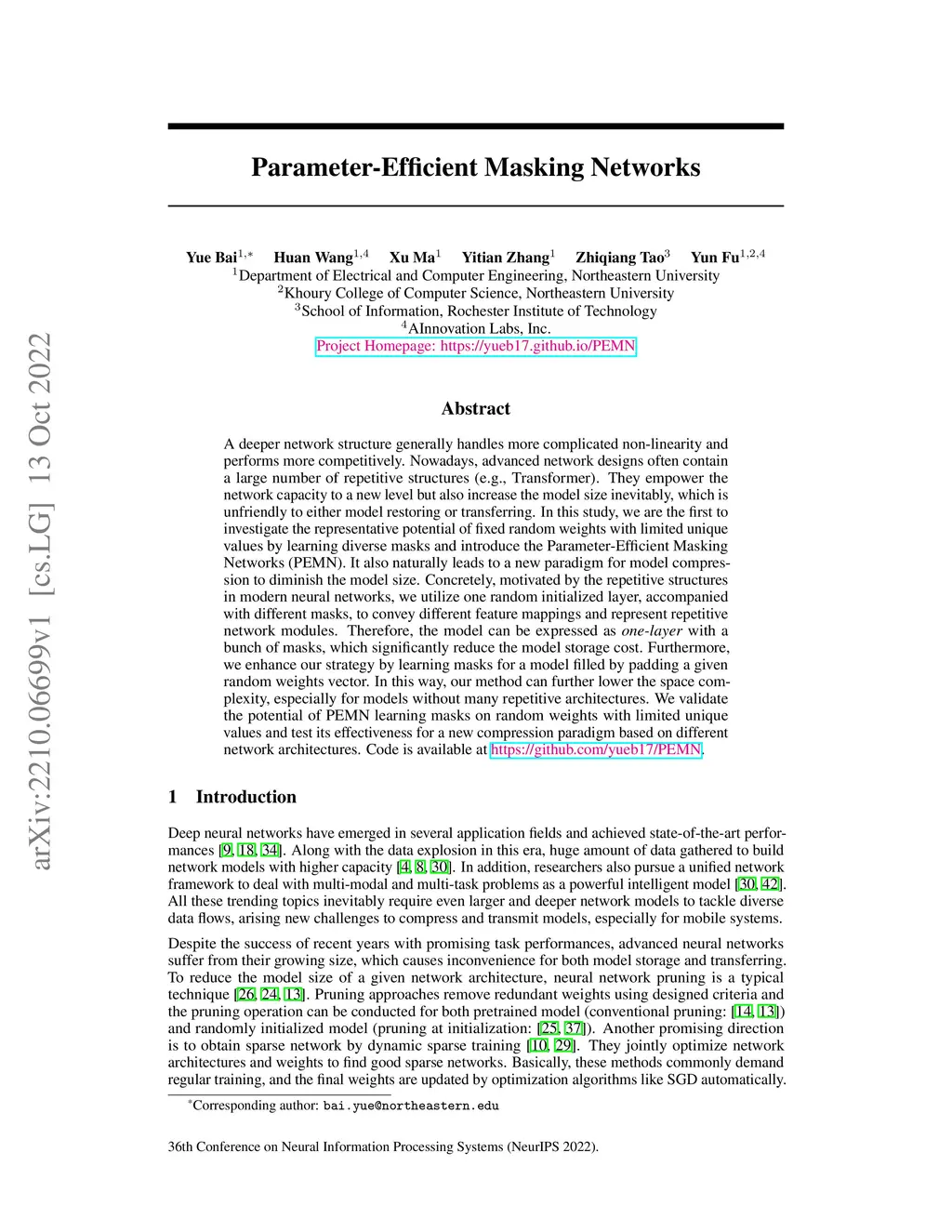 Parameter-Efficient Masking Networks