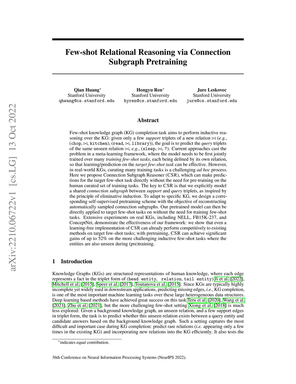 Few-shot Relational Reasoning via Connection Subgraph Pretraining