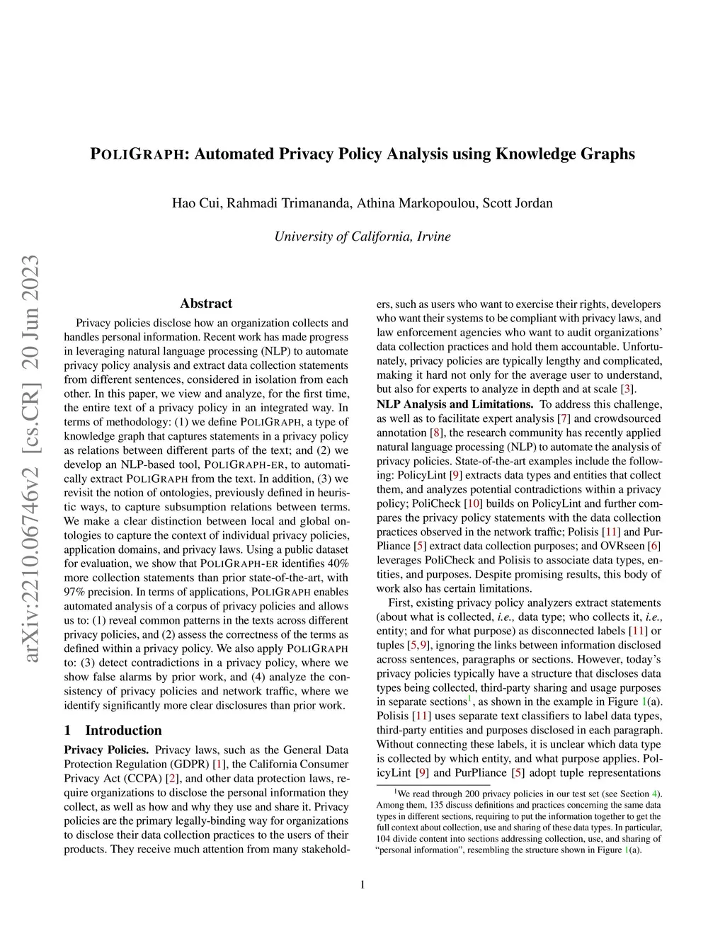 PoliGraph: Automated Privacy Policy Analysis using Knowledge Graphs (Journal Version)