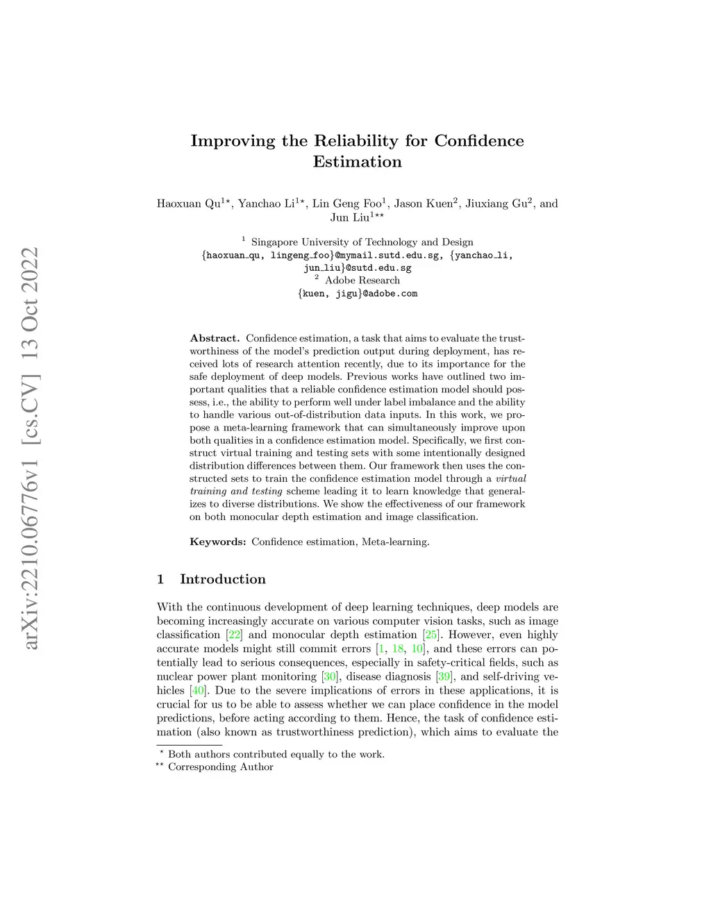 Confidence estimation, a task that aims to evaluate the trustworthiness of the model's prediction output during deployment, has received lots of research attention recently, due to its importance for the safe deployment of deep models. Previous works have outlined two important qualities that a reliable confidence estimation model should possess, i.e., the ability to perform well under label imbalance and the ability to handle various out-of-distribution data inputs. In this work, we propose a meta-learning framework that can simultaneously improve upon both qualities in a confidence estimation model. Specifically, we first construct virtual training and testing sets with some intentionally designed distribution differences between them. Our framework then uses the constructed sets to train the confidence estimation model through a virtual training and testing scheme leading it to learn knowledge that generalizes to diverse distributions. We show the effectiveness of our framework on both monocular depth estimation and image classification.