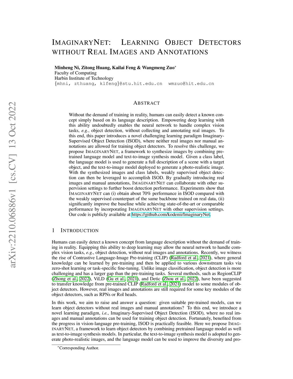 ImaginaryNet: Learning Object Detectors without Real Images and