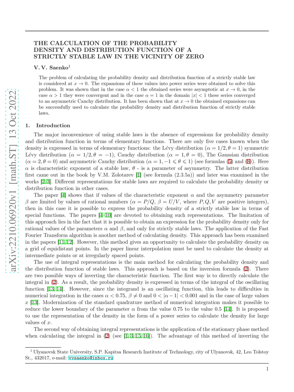 The calculation of the probability density and distribution function of