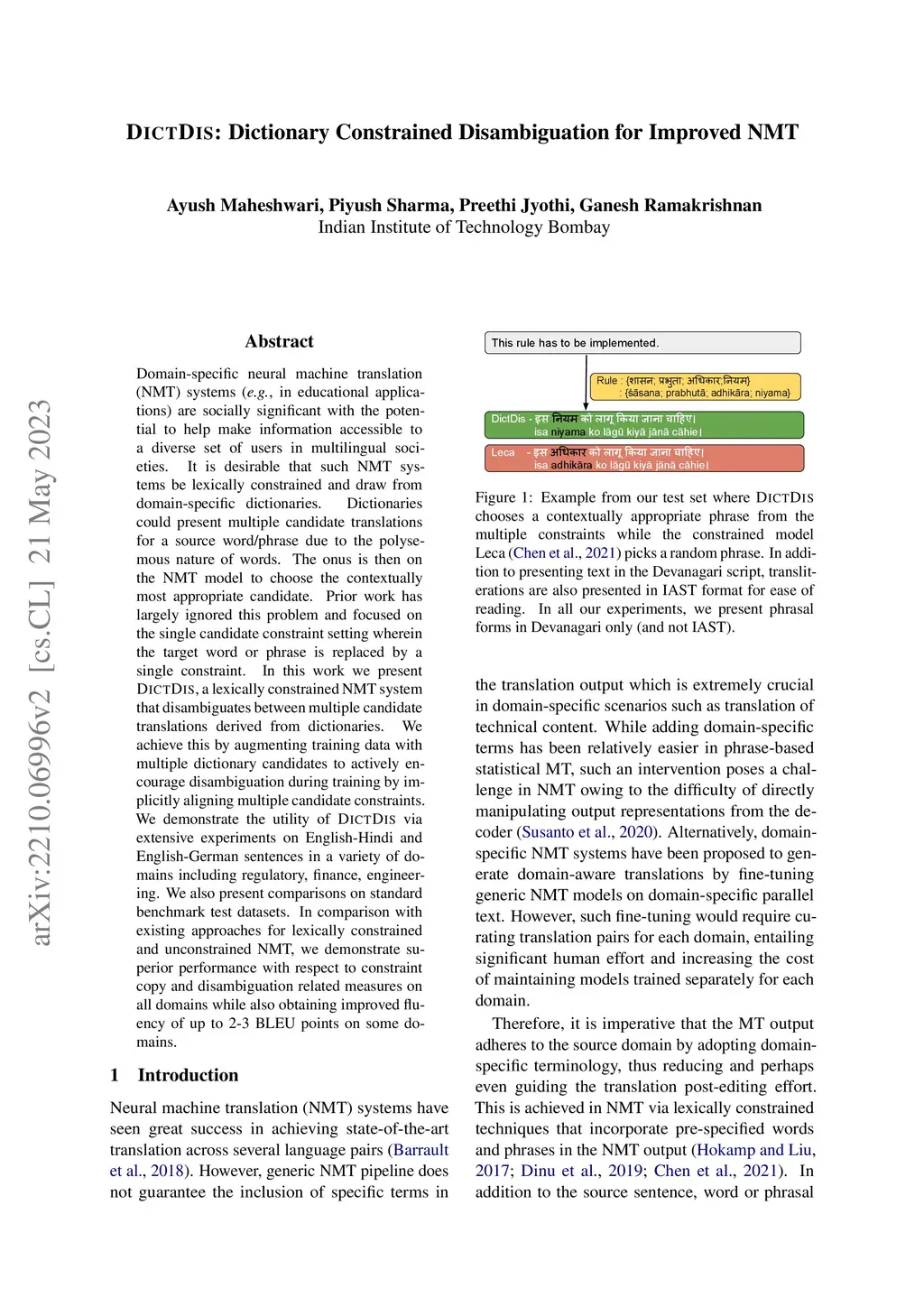 DICTDIS: Dictionary Constrained Disambiguation for Improved NMT