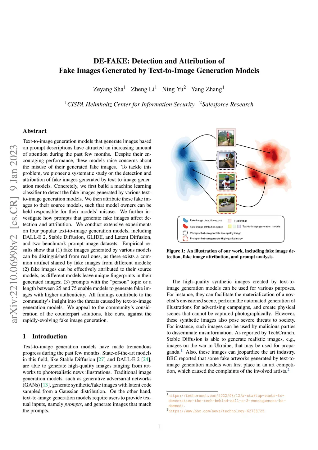 DE-FAKE: Detection and Attribution of Fake Images Generated by