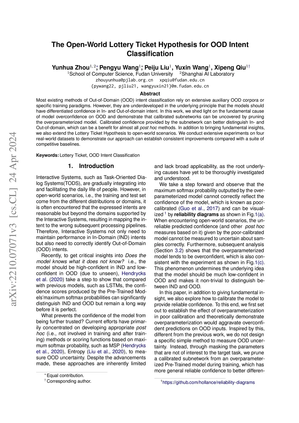 The Open-World Lottery Ticket Hypothesis for OOD Intent Classification
