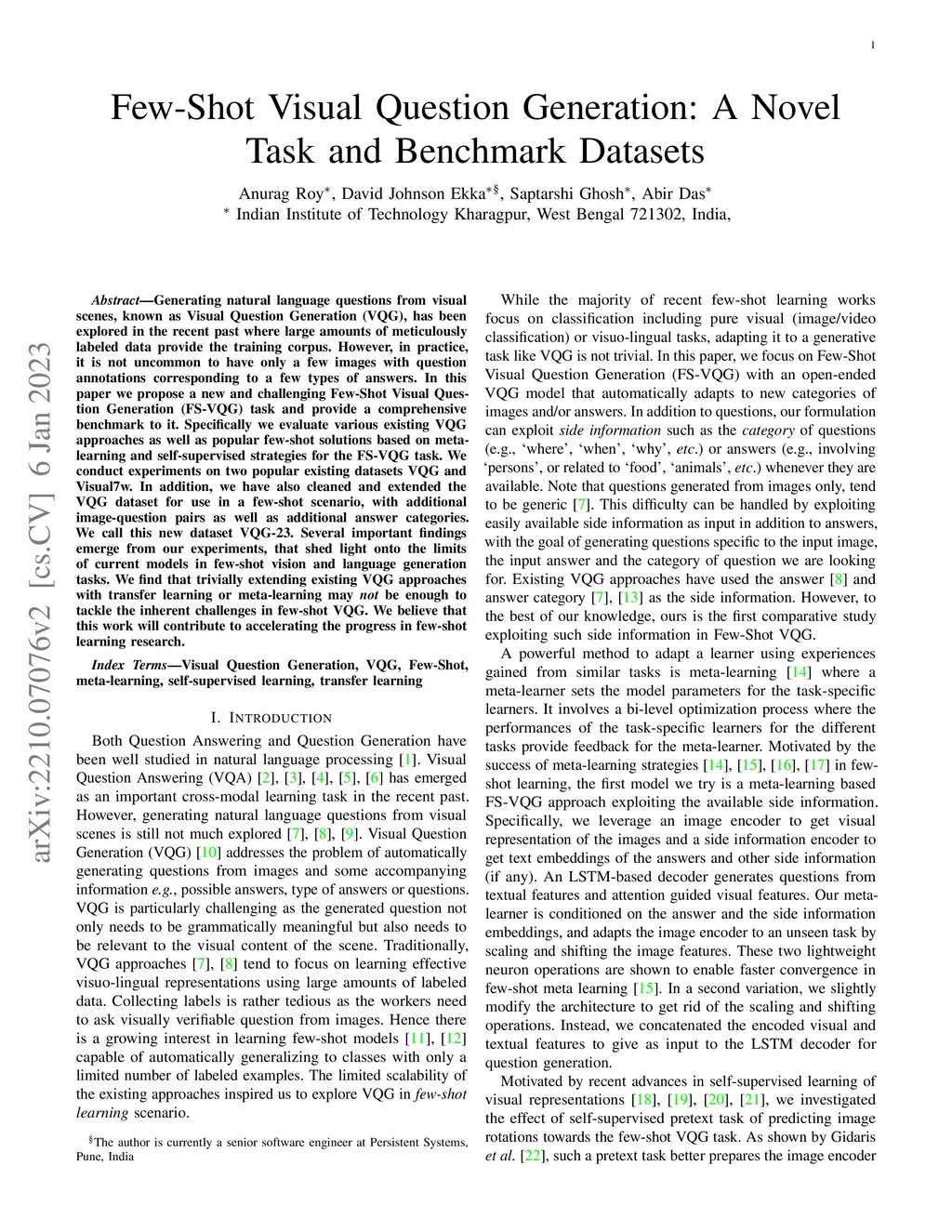 Few-Shot Visual Question Generation: A Novel Task and Benchmark Datasets