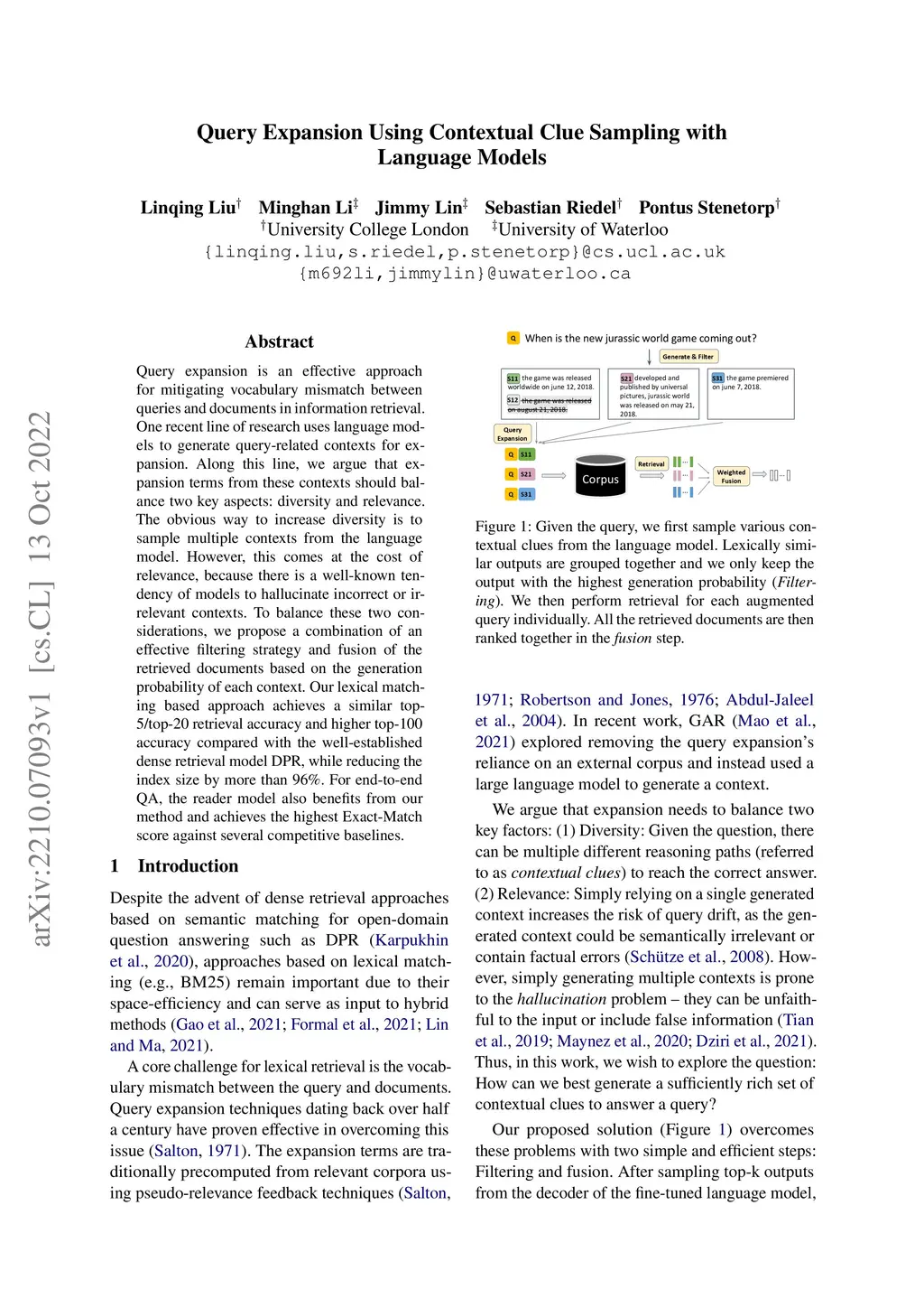 Query Expansion Using Contextual Clue Sampling with Language Models