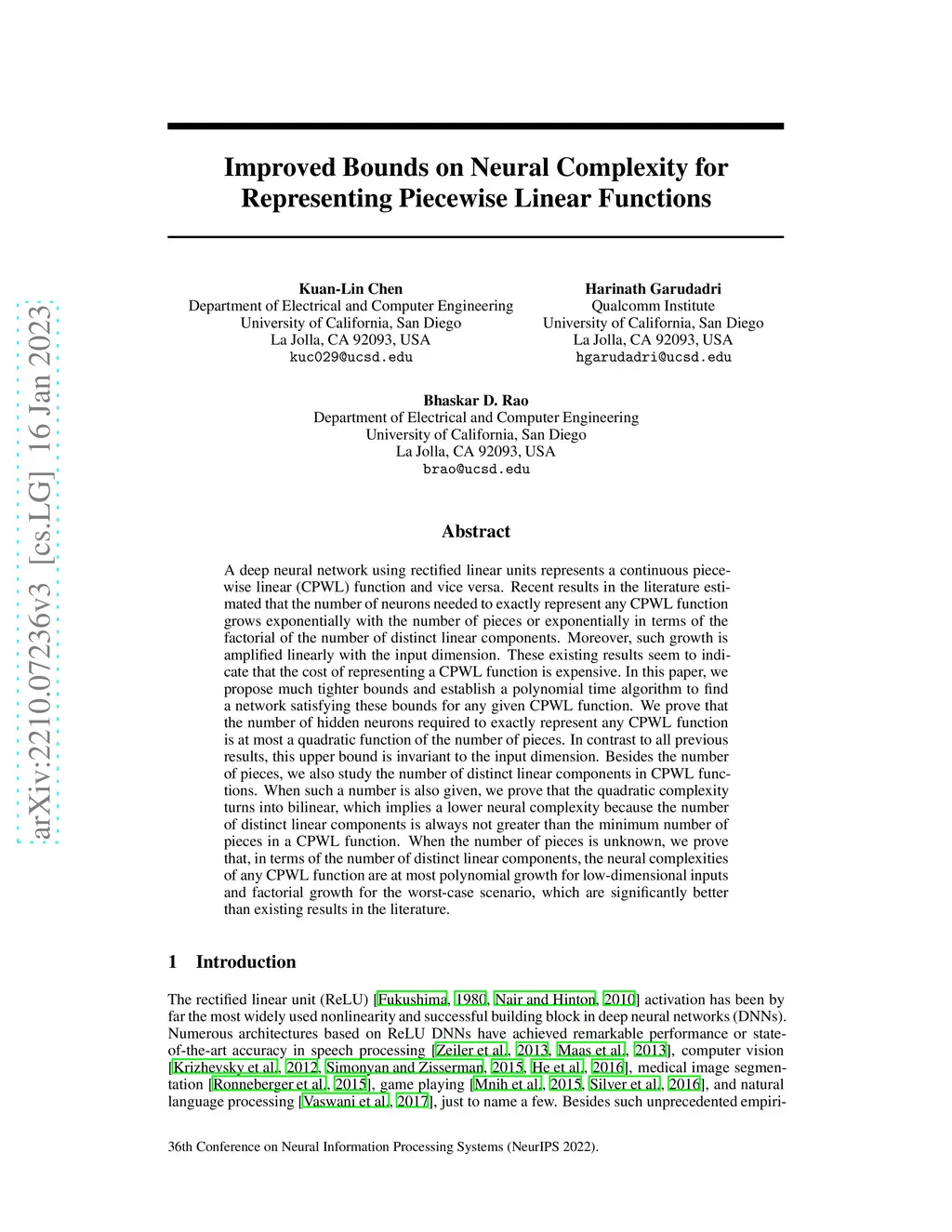 Improved Bounds on Neural Complexity for Representing Piecewise Linear