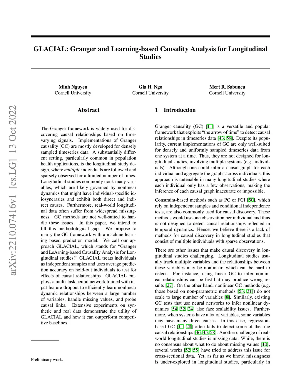 GLACIAL: Granger and Learning-based Causality Analysis for Longitudinal