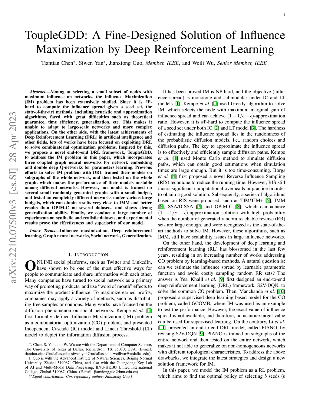 ToupleGDD: A Fine-Designed Solution of Influence Maximization by Deep