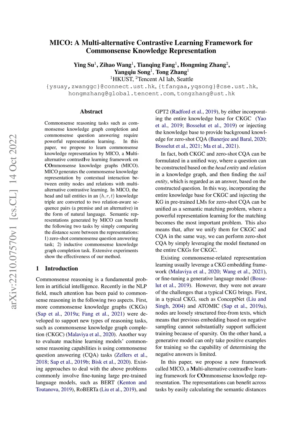 MICO: A Multi-alternative Contrastive Learning Framework for Commonsense