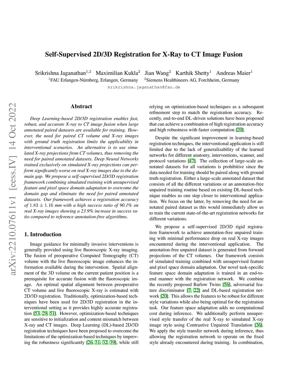 Self-Supervised 2D/3D Registration for X-Ray to CT Image Fusion