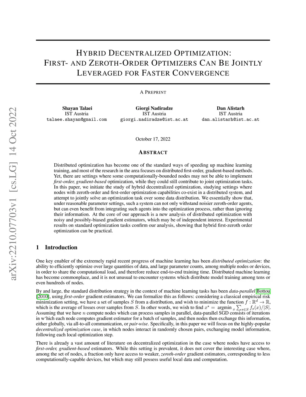 Distributed optimization is the standard way of speeding up machine learning training, and most of the research in the area focuses on distributed first-order, gradient-based methods. Yet, there are settings where some computationally-bounded nodes may not be able to implement first-order, gradient-based optimization, while they could still contribute to joint optimization tasks. In this paper, we initiate the study of hybrid decentralized optimization, studying settings where nodes with zeroth-order and first-order optimization capabilities co-exist in a distributed system, and attempt to jointly solve an optimization task over some data distribution. We essentially show that, under reasonable parameter settings, such a system can not only withstand noisier zeroth-order agents but can even benefit from integrating such agents into the optimization process, rather than ignoring their information. At the core of our approach is a new analysis of distributed optimization with noisy and possibly-biased gradient estimators, which may be of independent interest. Our results hold for both convex and non-convex objectives. Experimental results on standard optimization tasks confirm our analysis, showing that hybrid first-zeroth order optimization can be practical, even when training deep neural networks.