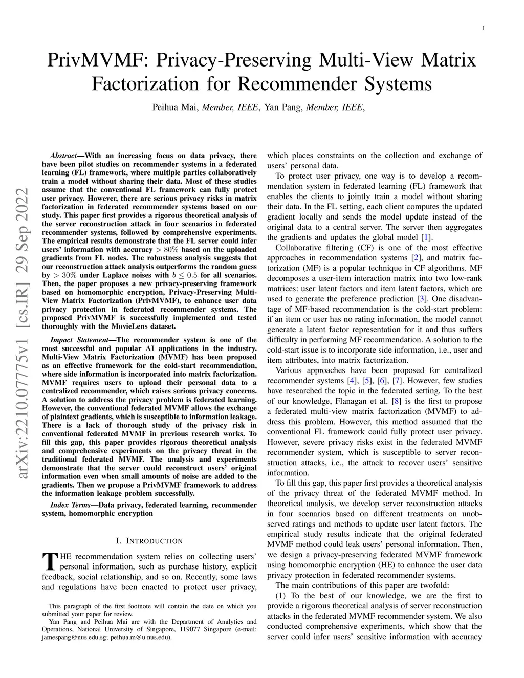 PrivMVMF: Privacy-Preserving Multi-View Matrix Factorization for