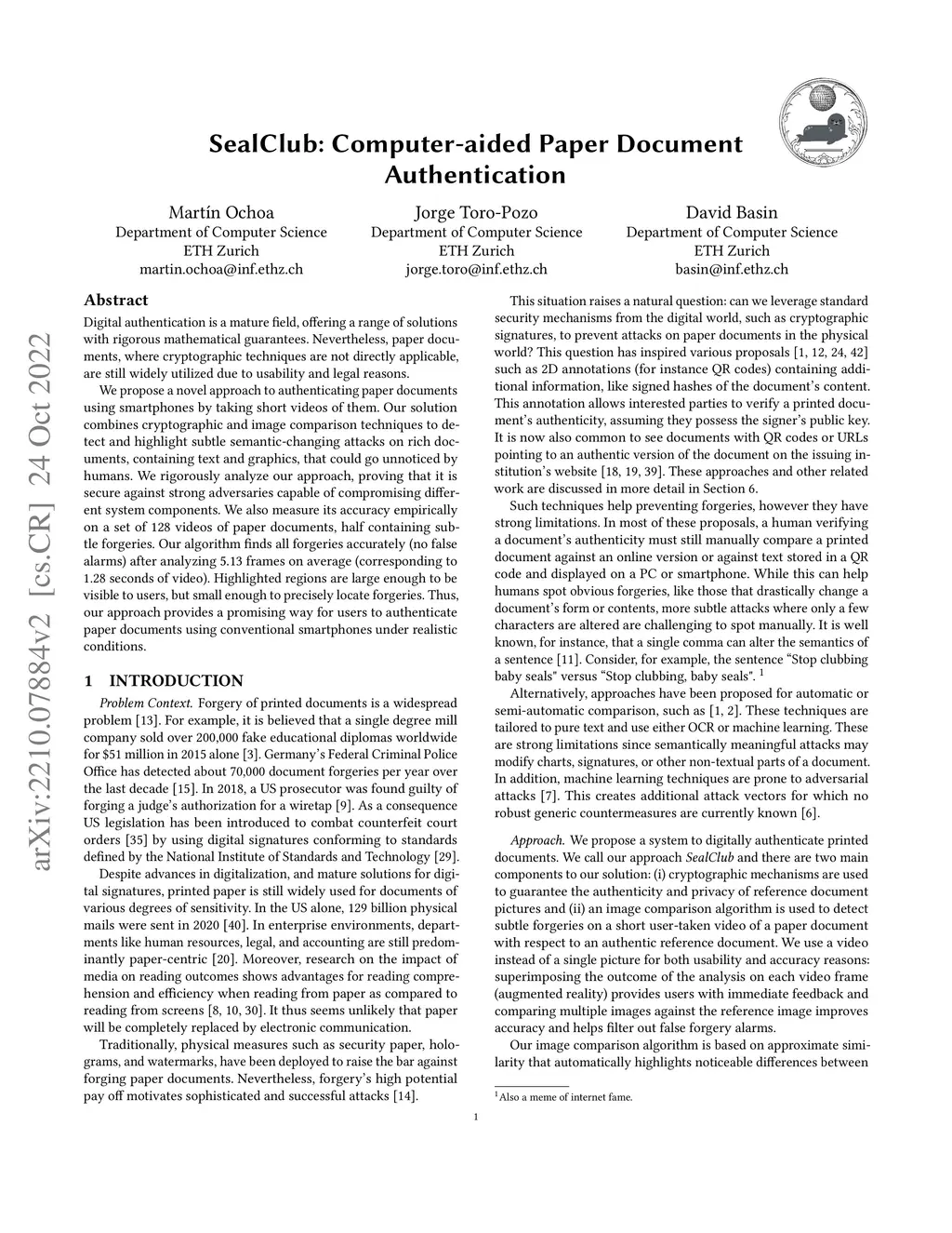SealClub: Computer-aided Paper Document Authentication
