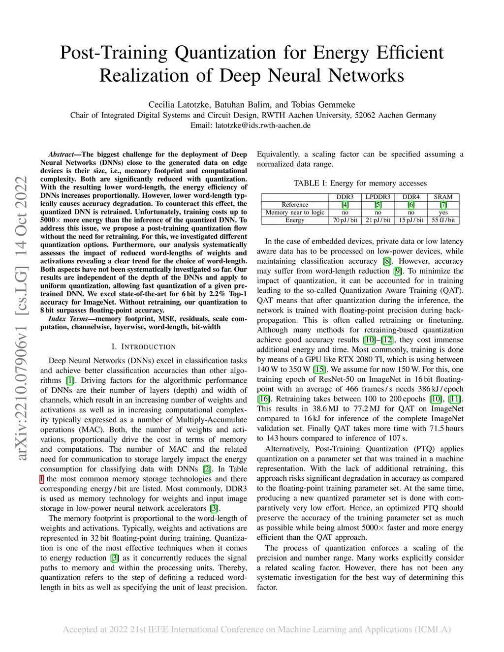 Post-Training Quantization for Energy Efficient Realization of Deep