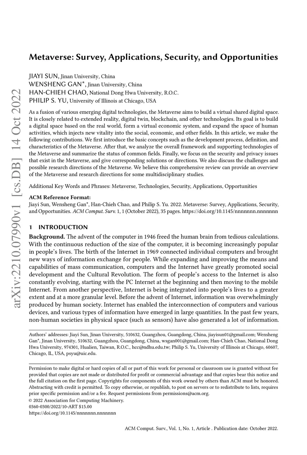 Metaverse: Survey, Applications, Security, and Opportunities