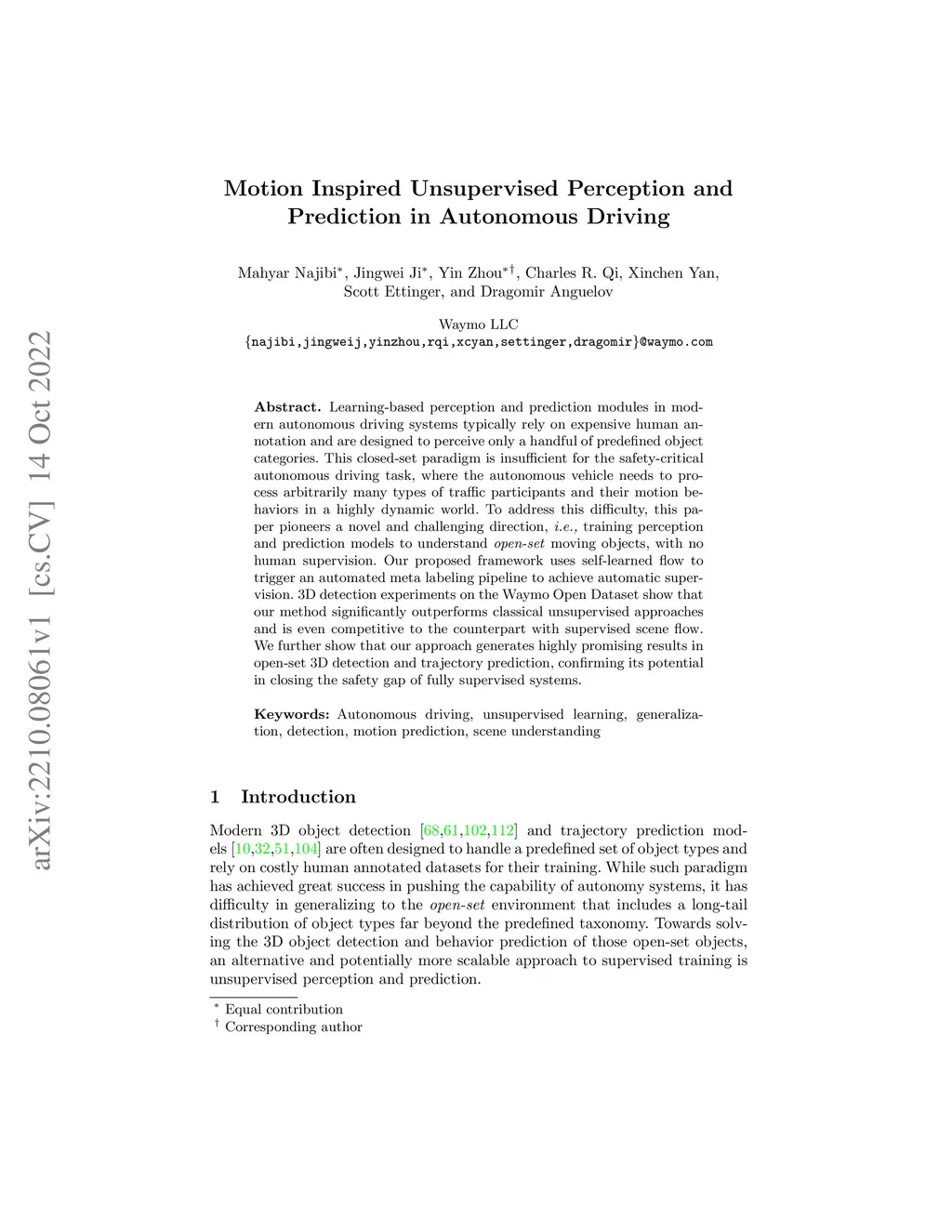 Motion Inspired Unsupervised Perception and Prediction in Autonomous