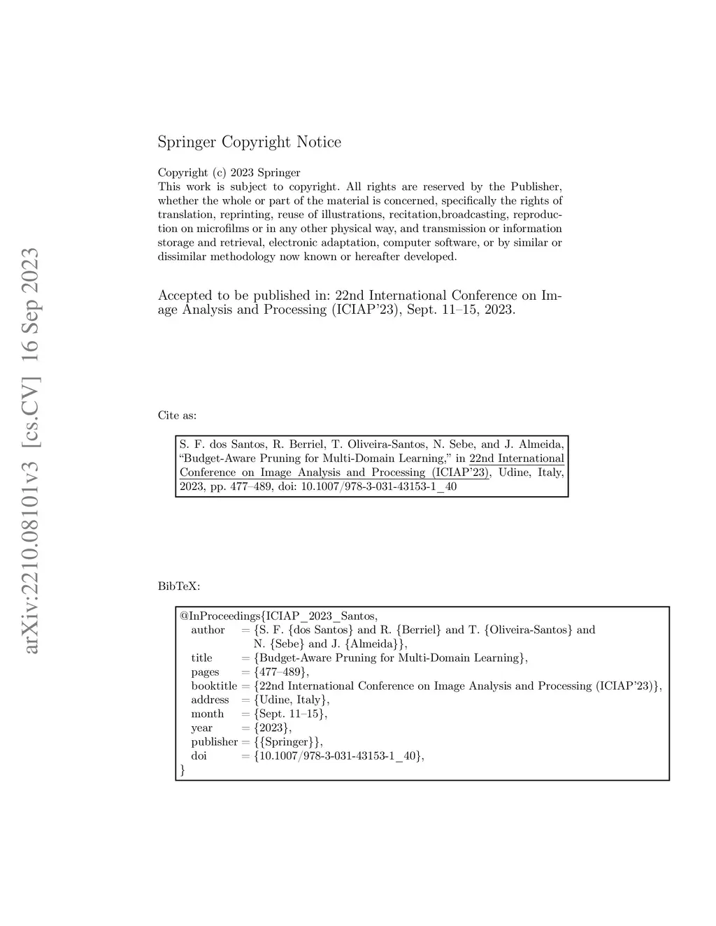 Budget-Aware Pruning for Multi-Domain Learning