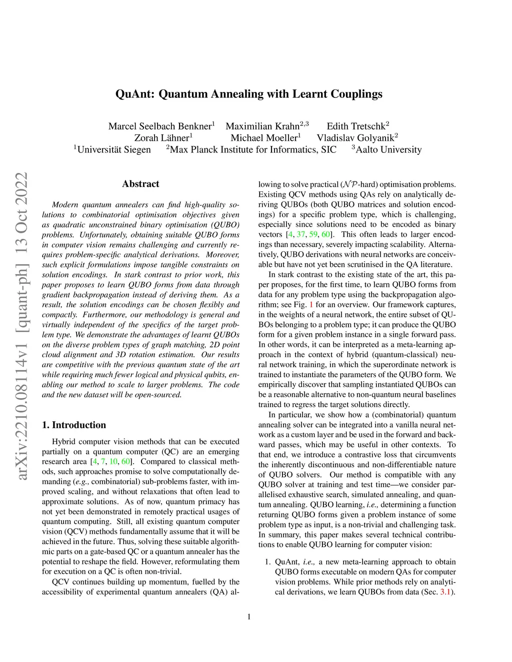 QuAnt: Quantum Annealing with Learnt Couplings