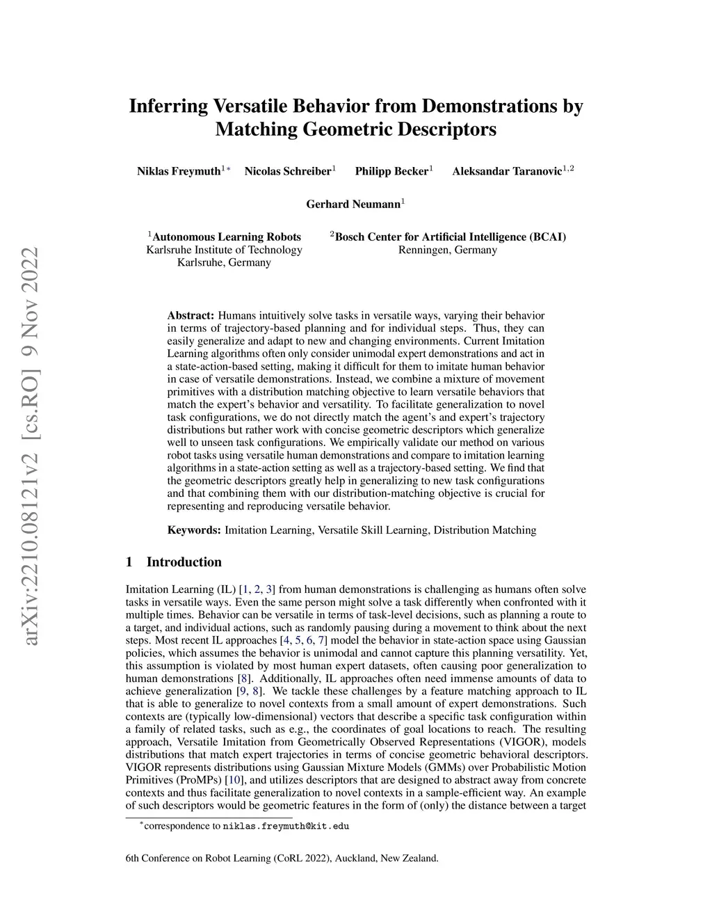 Inferring Versatile Behavior from Demonstrations by Matching Geometric