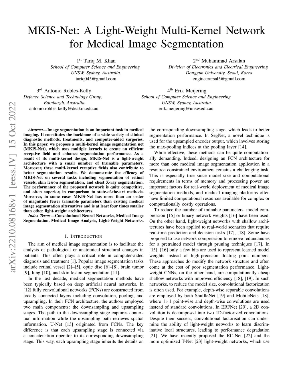 MKIS-Net: A Light-Weight Multi-Kernel Network for Medical Image