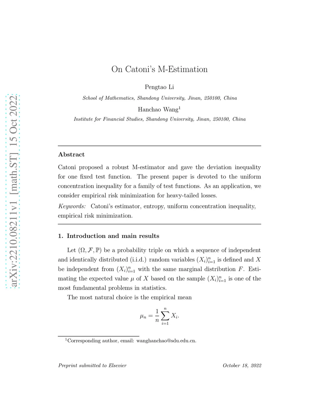 On Catoni's M-Estimation