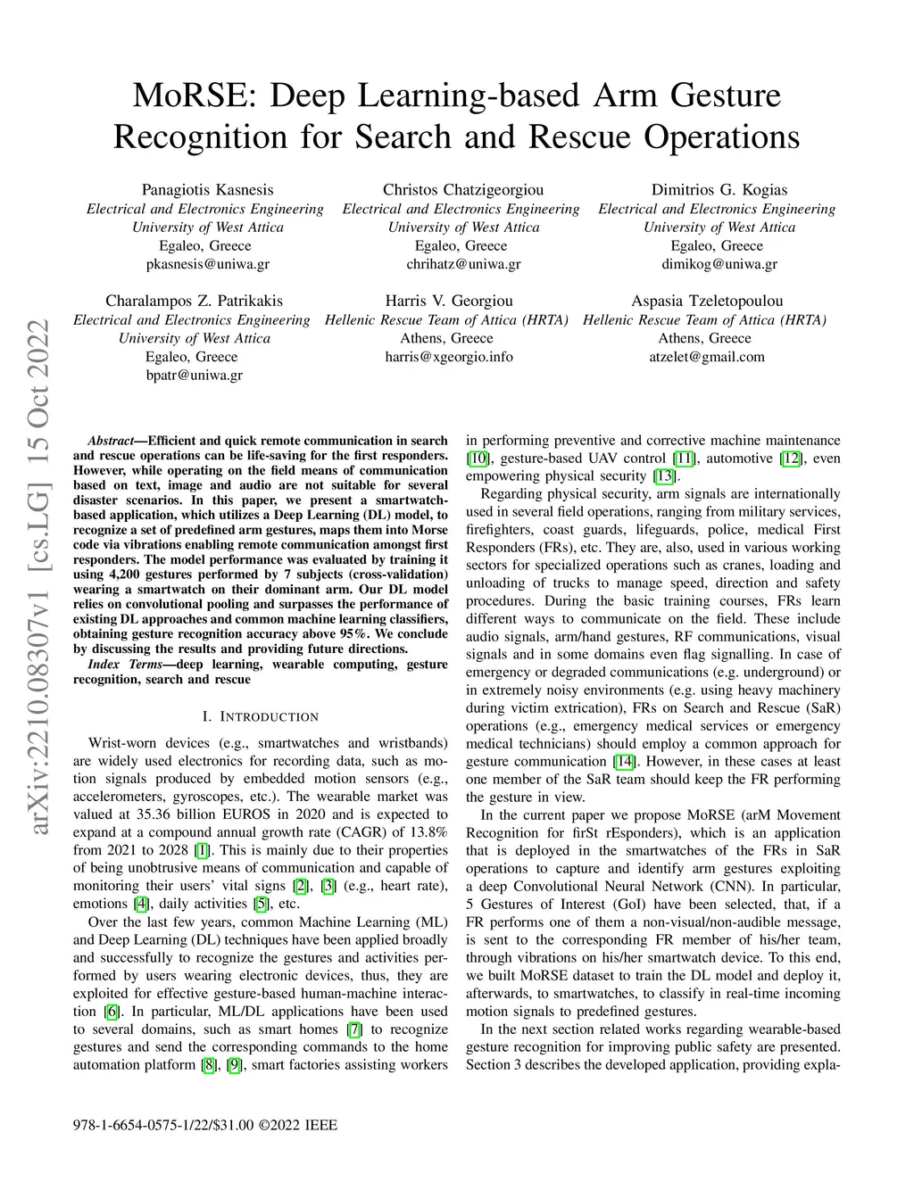 MoRSE: Deep Learning-based Arm Gesture Recognition for Search and Rescue