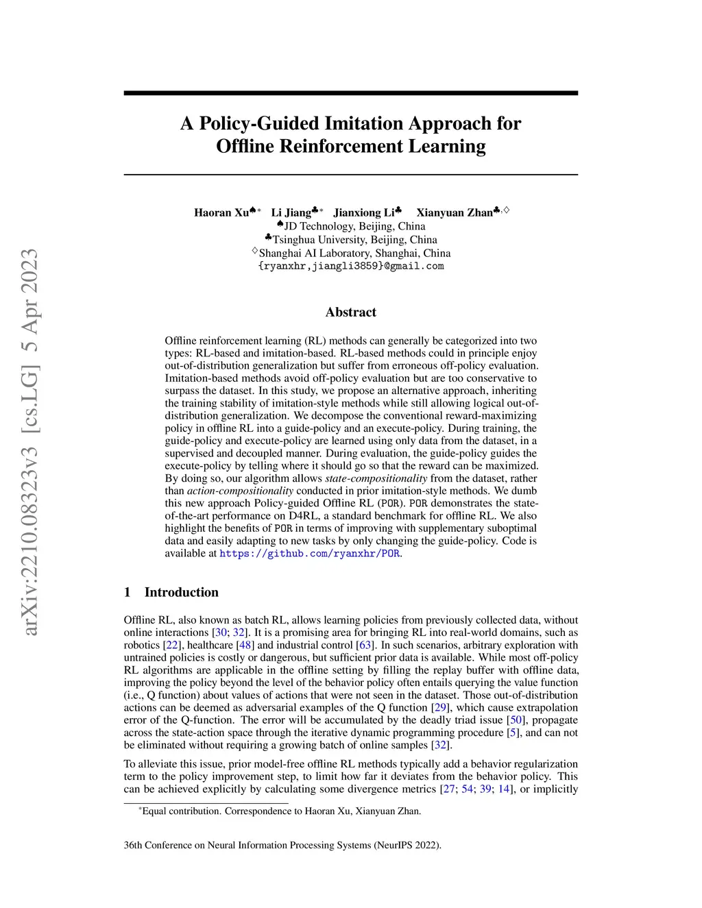 A Policy-Guided Imitation Approach for Offline Reinforcement Learning