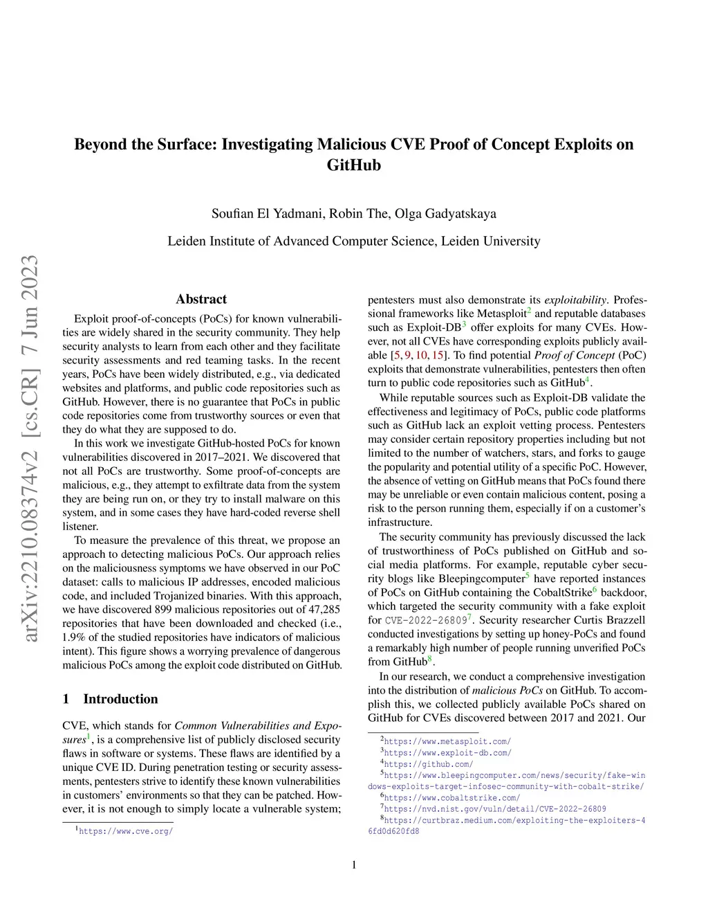 Exploit proof-of-concepts (PoCs) for known vulnerabilities are widely shared in the security community. They help security analysts to learn from each other and they facilitate security assessments and red teaming tasks. In the recent years, PoCs have been widely distributed, e.g., via dedicated websites and platforms, and public code repositories such as GitHub. However, there is no guarantee that PoCs in public code repositories come from trustworthy sources or even that they do what they are supposed to do. In this work we investigate GitHub-hosted PoCs for known vulnerabilities discovered in 2017--2021. We discovered that not all PoCs are trustworthy. Some proof-of-concepts are malicious, e.g., they attempt to exfiltrate data from the system they are being run on, or they try to install malware on this system, and in some cases they have hard-coded reverse shell listener. To measure the prevalence of this threat, we propose an approach to detecting malicious PoCs. Our approach relies on the maliciousness symptoms we have observed in our PoC dataset: calls to malicious IP addresses, encoded malicious code, and included Trojanized binaries. With this approach, we have discovered 899 malicious repositories out of 47,285 repositories that have been downloaded and checked (i.e., 1.9% of the studied repositories have indicators of malicious intent). This figure shows a worrying prevalence of dangerous malicious PoCs among the exploit code distributed on GitHub.