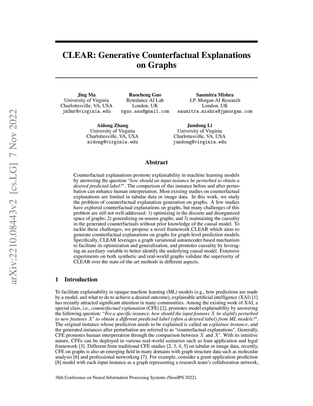 CLEAR: Generative Counterfactual Explanations on Graphs