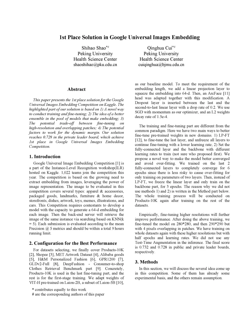 This paper presents the 1st place solution for the Google Universal Images Embedding Competition on Kaggle. The highlighted part of our solution is based on 1) A novel way to conduct training and fine-tuning; 2) The idea of a better ensemble in the pool of models that make embedding; 3) The potential trade-off between fine-tuning on high-resolution and overlapping patches; 4) The potential factors to work for the dynamic margin. Our solution reaches 0.728 in the private leader board, which achieve 1st place in Google Universal Images Embedding Competition.