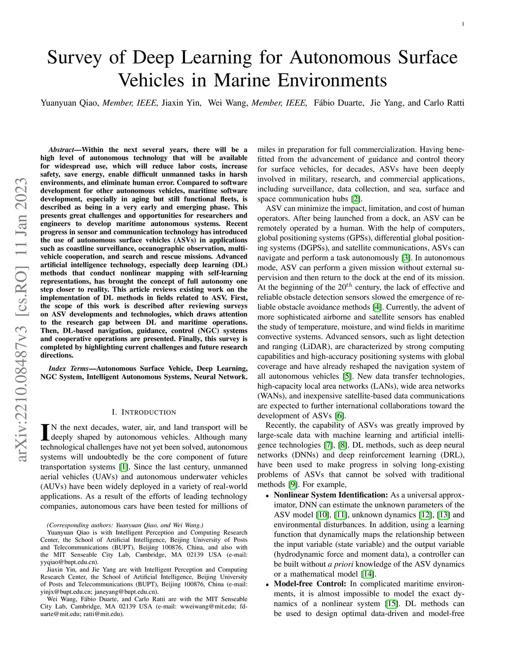 Survey of Deep Learning for Autonomous Surface Vehicles in the Marine