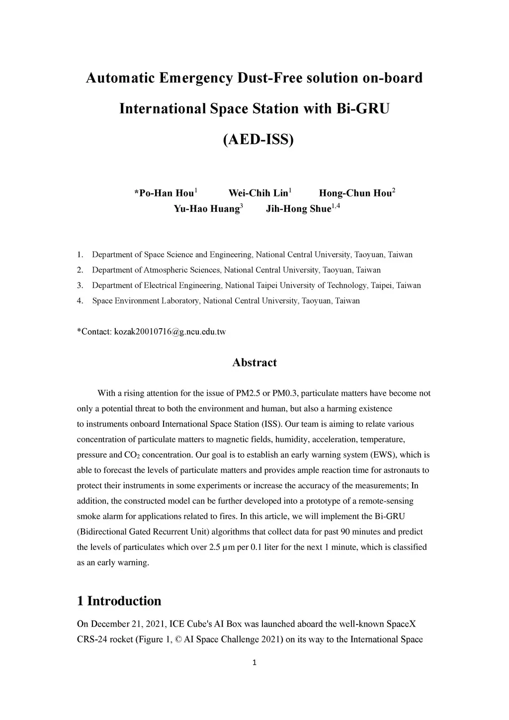Automatic Emergency Dust-Free solution on-board International Space Station with Bi-GRU (AED-ISS)