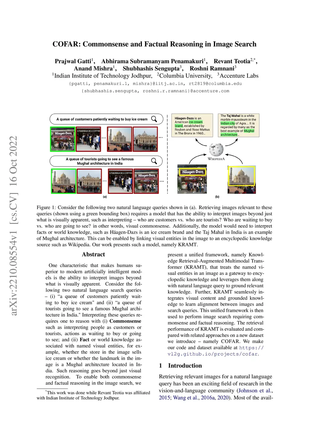 COFAR: Commonsense and Factual Reasoning in Image Search
