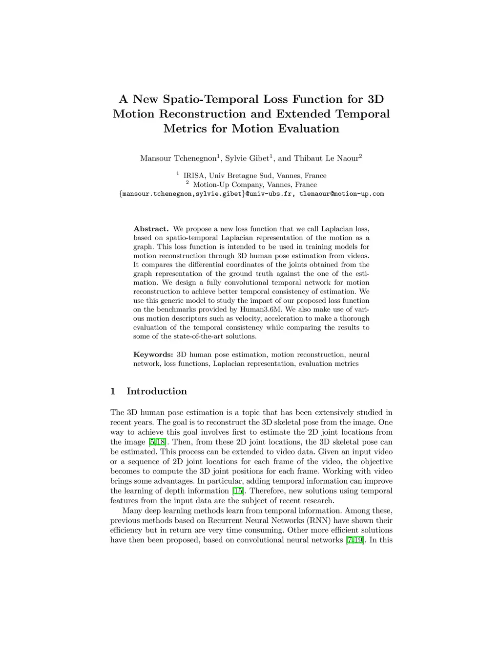 A New Spatio-Temporal Loss Function for 3D Motion Reconstruction and