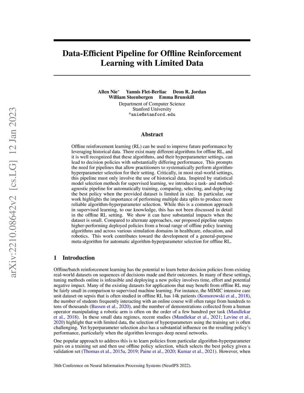 Data-Efficient Pipeline for Offline Reinforcement Learning with Limited