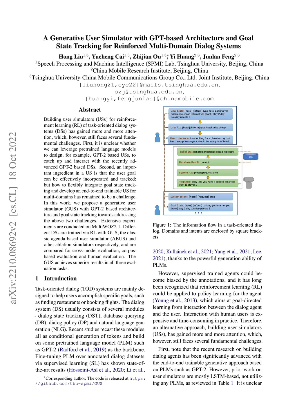 A Generative User Simulator with GPT-based Architecture and Goal State