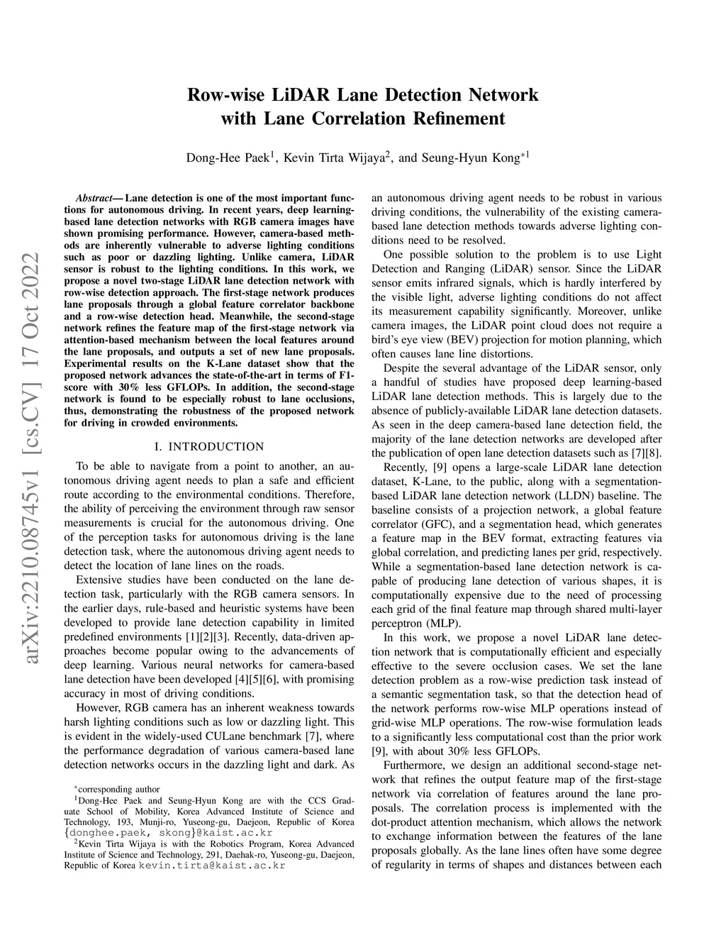 Row-wise LiDAR Lane Detection Network with Lane Correlation Refinement