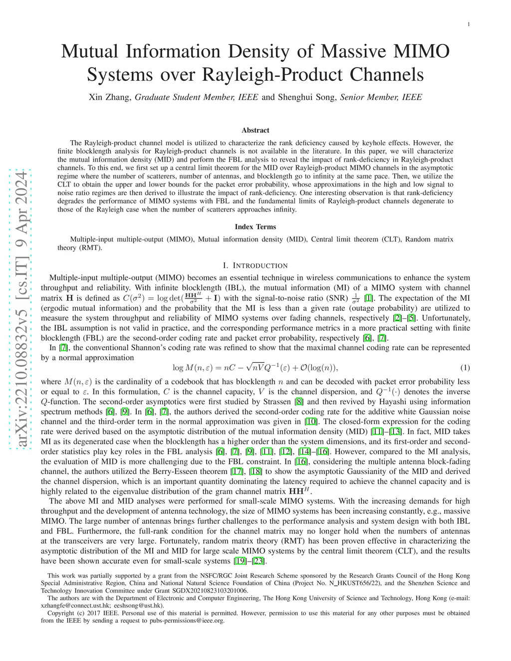 Mutual Information Density of Massive MIMO Systems over Rayleigh-Product