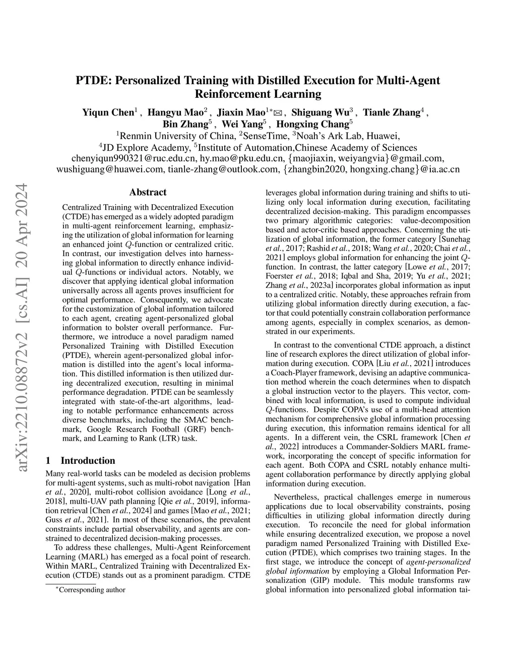 PTDE: Personalized Training with Distilled Execution for Multi-Agent
